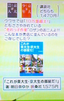 「売れっ子作家、ロザンのおふたりよ!! こんな本が書店に並んでいるのをご存じでした? 『これが東大生・京大生の部屋だ!』」